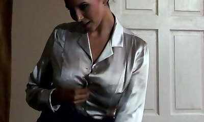 Astonishing long-haired white slut dreams to satisfy herself with masturbating