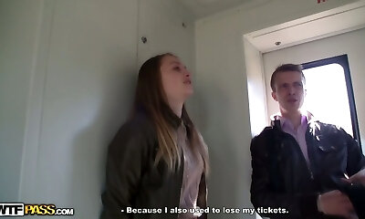 Russian brunette cutie seduces a stud in the electric train