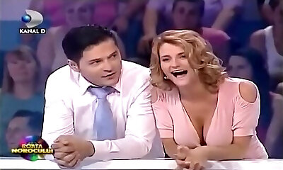 Gorgeous MILF with big tits blows a gigantic bubblegum elastic