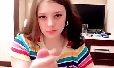Teen babe gets cumshot milking