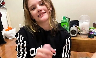 My new petite girlfriend shows me her cock jacking skills