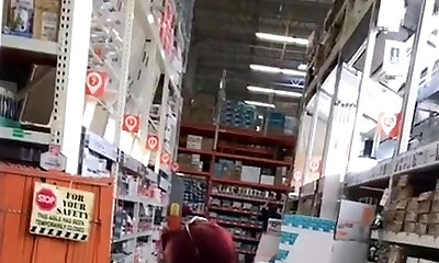 milf con il tacco alto, breve microskirt senza mutandine in home depot nudo in pubblico
