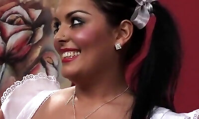 latina cameriera ada sanchezs massiccia capo di giocherellare con la sua elegante beaver