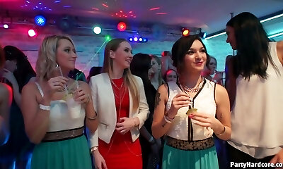 un gruppo di femmes succhiare alcune spogliarelliste & ottenere scopata da loro