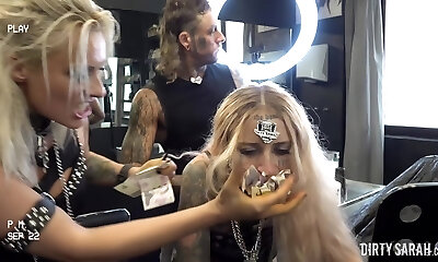 Tattooed Blonde Screams While Her Shaved Pussy Is Being feasted