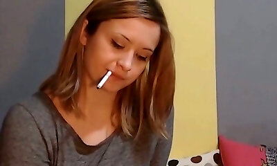 Nerdy teen webcam slut smokes and faps till squirting