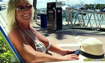 Horny milf with in a bikini fucks hard on a luxurious yacht