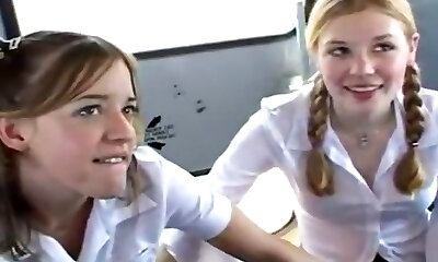 Teenagers schoolbus lucky day