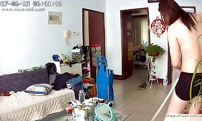 Kinky hidden web cam vid of my own slim chick flashing her backside in the bedroom