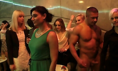 Insane chicks take turns at toying with cocks at the party