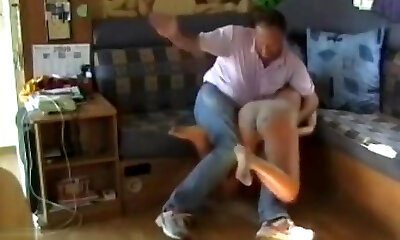 Redhead Lesbo Getting Spanked Over The Knee By A M