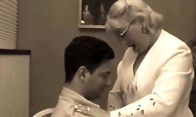 Mature and majestic blonde professor sucks pecker and fucks a student