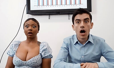 Interracial fucking in the office with naughty Avery and Zoe