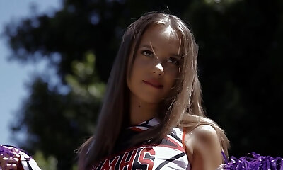 Uber-cute cheerleader Amelia Ost spreads legs to be pulverized in the ass