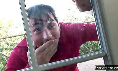 Kitchen Blowjob Handjob with Latex Gloves - Lady clad in spandex uniform Boots - Cum in my Mouth