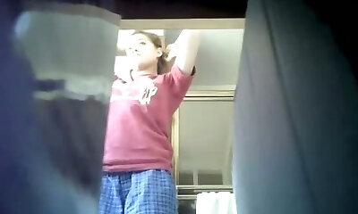 Spy cam video of a naked puss in the bathroom